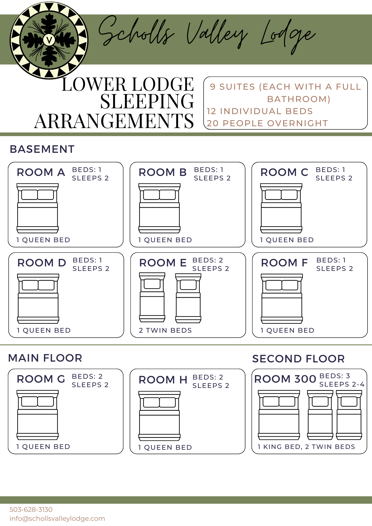 Bedding ArrangementsTo help you plan your stay with ease, we’ve provided detailed bedding arrangements for each of our guest rooms. Upper Lodge Lower Lodge Back Back