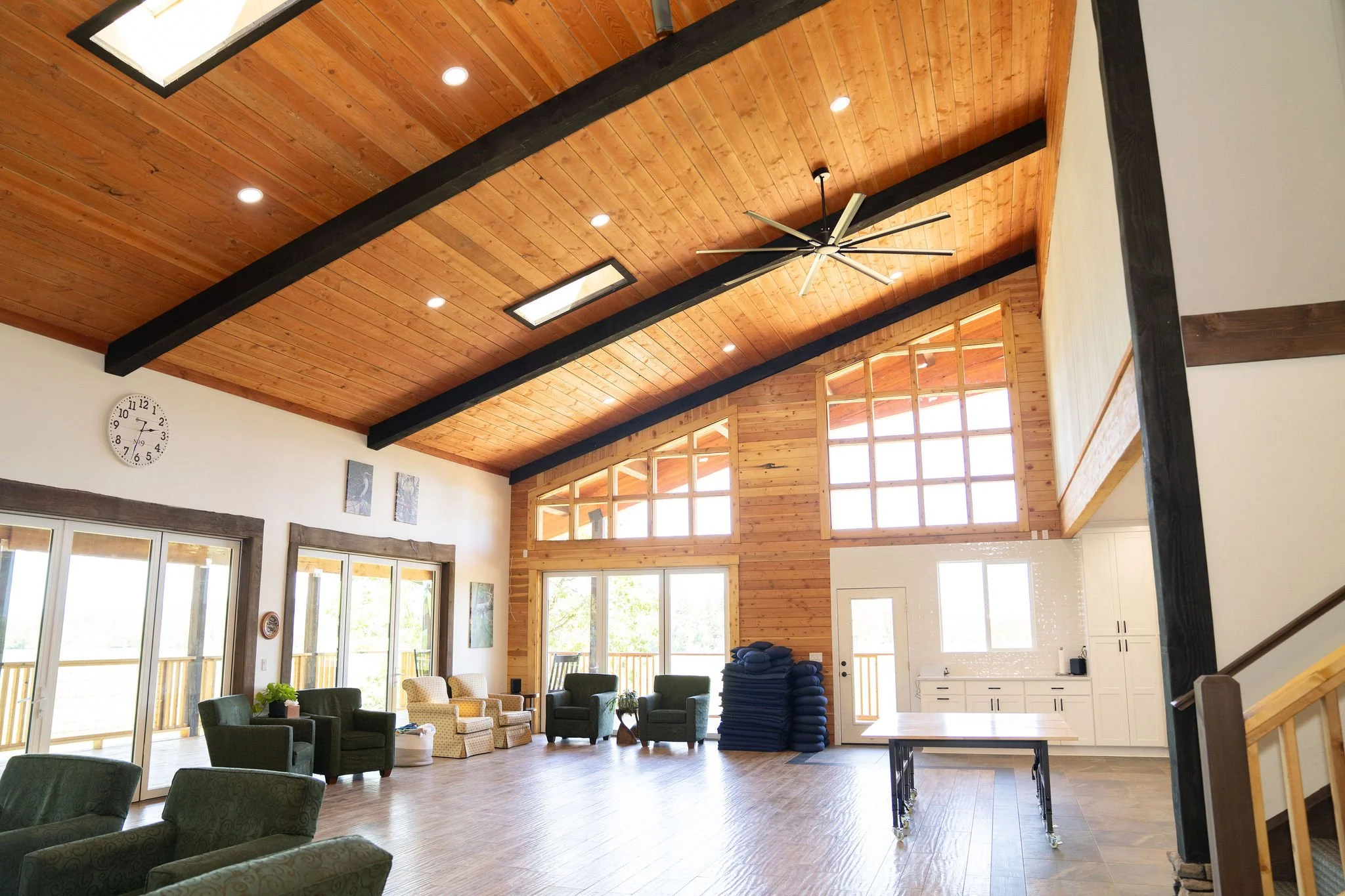 Each space flows naturally into the next, making it easy for groups to move between work, meals, and downtime.